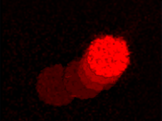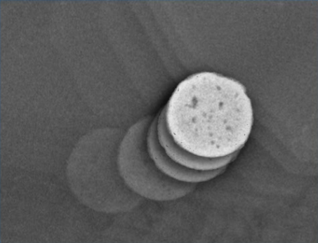 Electron image of a spinner bowl sample showing contamination build up after EDS map acquisitions of 1 minute and 17 minutes.