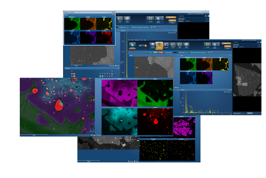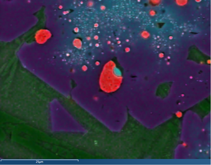 The richness of from electron images, X-ray Maps and spectra can sometimes be overwhelming. Having the ability to overlay selected X-ray maps on the electron image to create a image, means that you can see both morphology and chemical in a single image. This is really useful when looking for a particular in a sample.