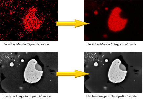 Integration Mode recognises that when you find a feature of interest and stop moving the stage, what you really want to do is discover more about the feature. So when the stage has stopped moving, AZtecLive automatically switches to Integration mode to give you higher quality data to reveal the finer detail. When you decide to move to another area, AZtecLive automatically switches back to the more responsive Dynamic mode.