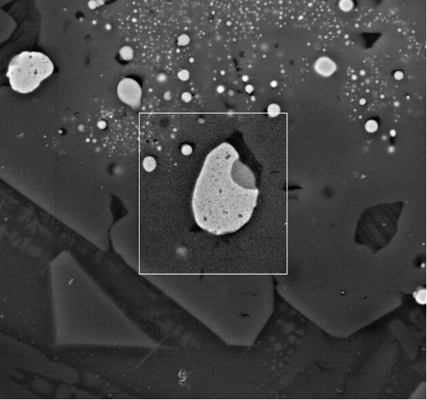 Live Trace view of Aluminium locations recorded during an investigation of a slag sample. The area highlighted by the user has a high Aluminium concentration.