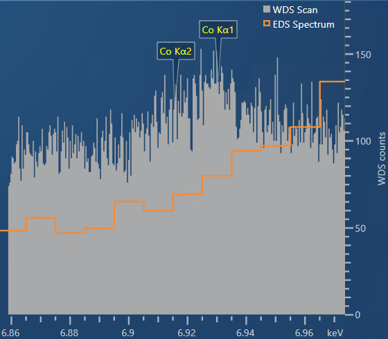 通过WDS对高温合金中仅0.1wt%Co元素的Ka线做谱图扫描