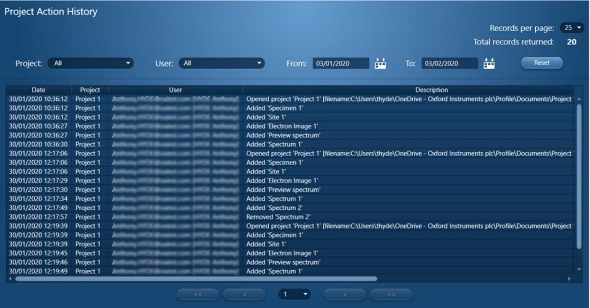 审查程序可根据用户、项目、日期/时间的记录进行筛选