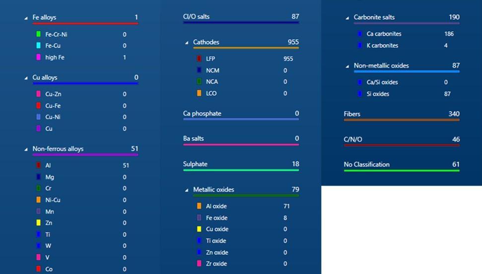 图 3  通过 AZtecBattery 检测到的颗粒分类统计结果