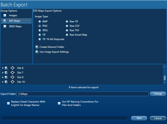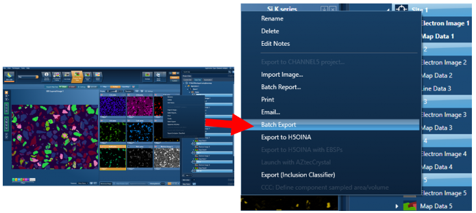 有些用户在一次测试中采集了多个位置(如图10中数据树显示),在数据导出时希望一次性导出所有图像,AZtec中有批量导出功能可以满足上述要求。