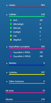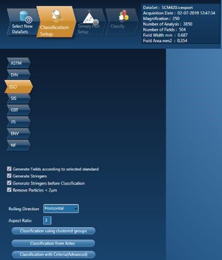 The resulting EDS data is analysed and rates the compliance of the inclusions to the required standard. It automatically processes the data in respect to: