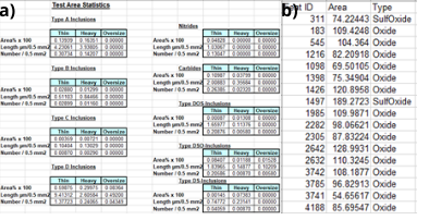 There are a number of rating methods to determine inclusion type and count. These are commonly presented in terms of severity and performed to a number of national and international standards. Some of these methods were originally developed using light optical microscopes (LOM). Using LOM requires time and expertise, limits the minimum inclusion size that can be detected and lacks chemical data.