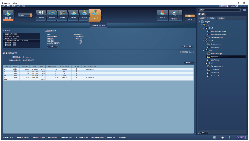 但在实际使用中的某些情况下,客户对定量分析的准确性要求极高,如轻元素、含量较低元素的定量分析。针对这种需求,我们建议采用有标样定量分析方法,进一步提高定量结果的准确性。本文将介绍基于扫描电镜(SEM)下,牛津仪器能谱仪(EDS)系统软件AZtec中有标样定量分析的具体步骤和注意事项。