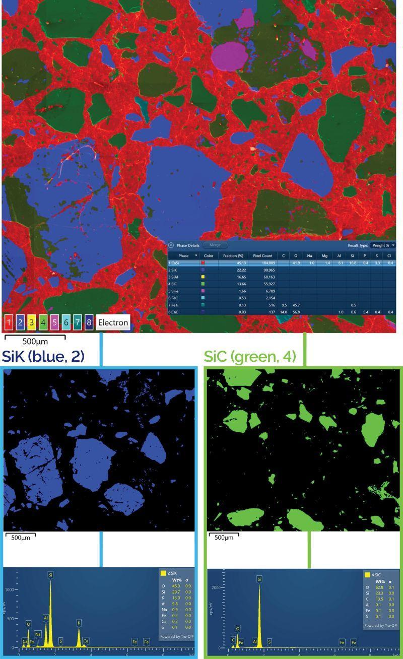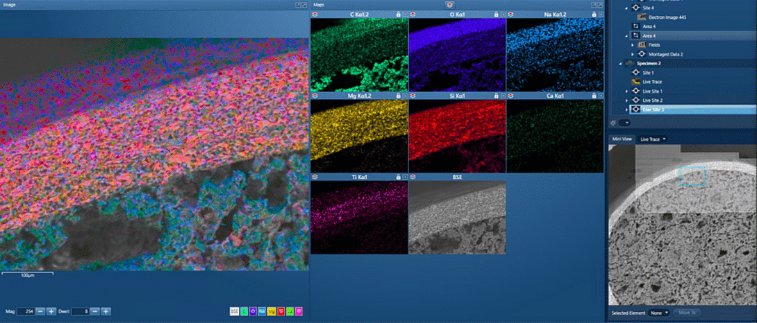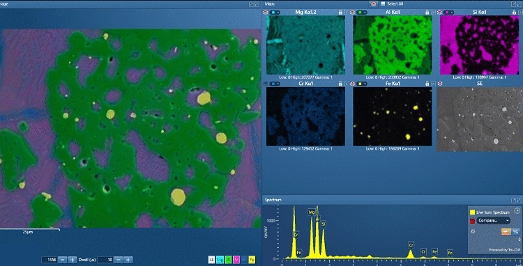 实验炉渣样品分析:借助 AZtecLive 操作界面,可通过实时化学成分反馈对样品实现快速、全面的分析表征。