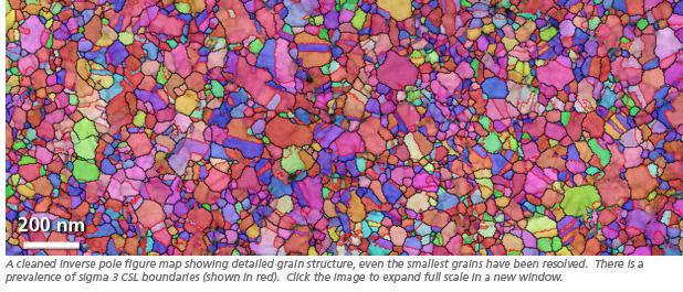 全新创新的“高精度算法”提升了传统EBSD分析能力,达到更高的准确性和细节。