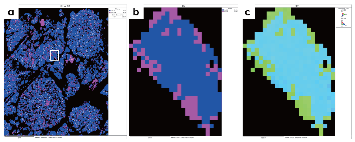 严格的取向关系分析在显微尺度验证了这种相变过程,可以和 TEM 等手段相互印证。