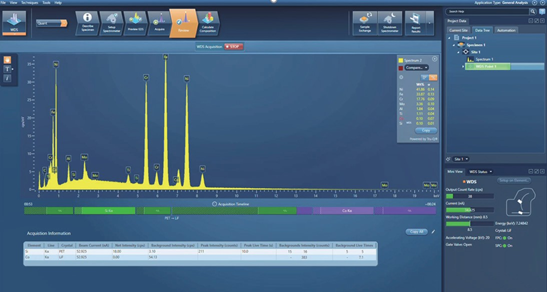 但是由于旧式波谱软件操作复杂,参数设置需多次尝试,对操作人员要求高等问题,制约了波谱技术的大范围推广。目前牛津仪器推出全新的 AZtecWave 分析系统,自动化程度大幅提高,且基于能谱 EDS 的结果,可以自动给出合适的检测参数,极大地降低了波谱使用门槛,且基于大家熟悉的 AZtec 平台,有效提高波谱的利用率,使大家都能够轻松感受到波谱的技术优势。