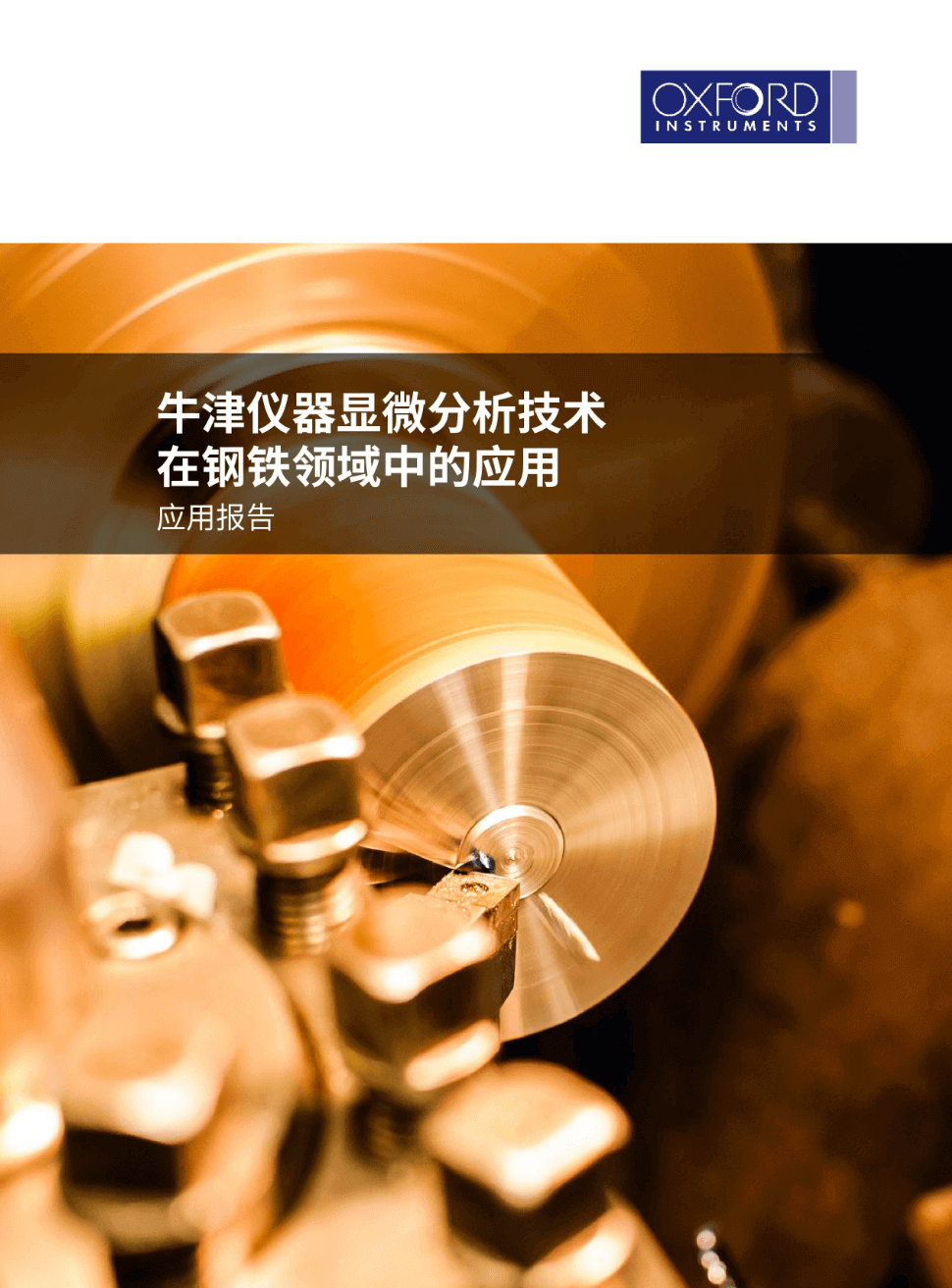 牛津仪器显微分析系统包括了能谱仪(UltimMax 系列),电子背散射衍射仪(Symmetry S2)及波谱仪(AZtecWave)。 在一体化Aztec软件平 台上,可以对钢铁材料进行主量、微量及痕量元 素的定性、定量成分分析,以及碳元素等轻元素 的定量分析。同时也可对夹杂物进行成分、结构 分析及统计分析,并对钢中物相及组织进行鉴定 (如析出相,马氏体、贝氏体及铁素体的区分), 进而实现微观至宏观的组织、织构、晶粒、物相 表征等。