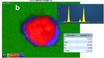 无标样定量分析是能谱分析最常用的方法即使用软件内置标样进行元素定量分析。牛津仪器Ultim Max系列能谱仪拥有强大的Tru-QTM3擎,包括了准确的AutolD(自动元素标识), PPC合峰修正),xpp(基体校正方法),FLS(高帽滤波最小二乘法拟合背景扣除)等,确保了快速而准确的无标样定量分析结果。
