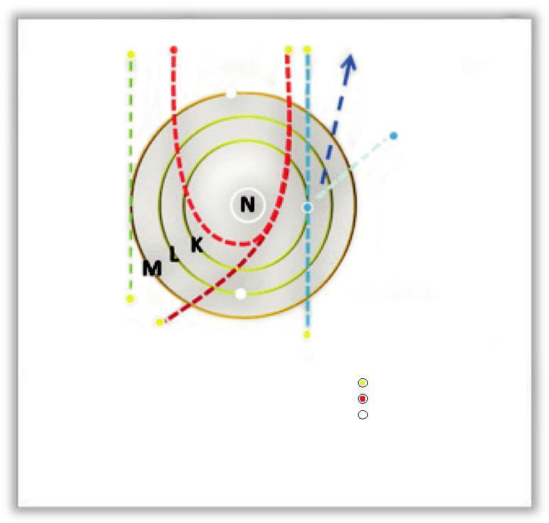 入射电子将能量转移给内层轨道电子得到能量的内层轨道电子脱离轨道,成为二次电子并在原轨道上留下空