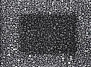 图1 某样品表面SEM下长时间电子束辐照产生的碳污染(黑色区域)