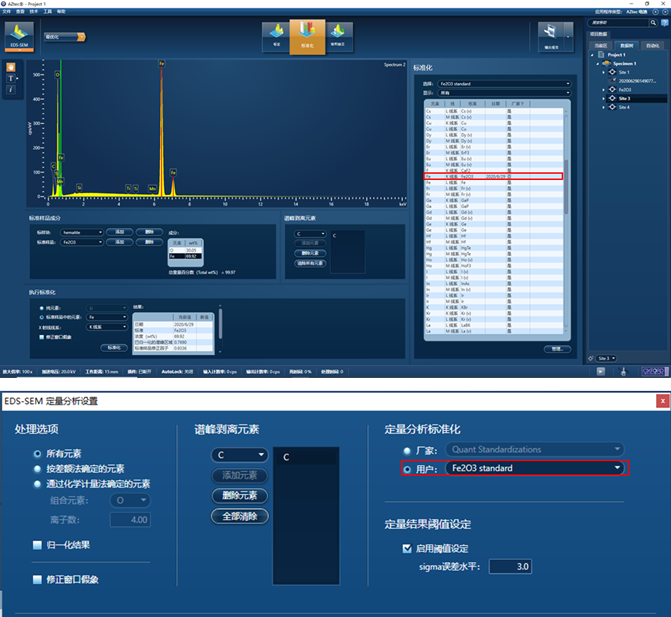 在需要对某些主量和微量元素进行精准定量时,牛津仪器EDS还提供了第三种分析方法——有标样定量分析。该应用报告通过理论公式推导了有标样定量分析的测试条件,并通过磁铁矿标样证明牛津仪器EDS有标样定量分析的准确性。