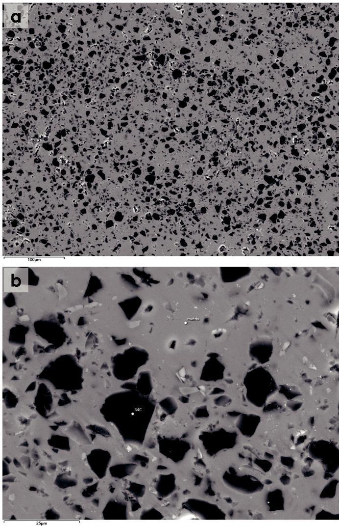 以金属基复合材料Al/B4C为例,图1为该复合材料的SEM电子图像,基体为铝合金,在电子图像中的衬度较亮。B4C相较暗,弥散分布在铝合金基体中。